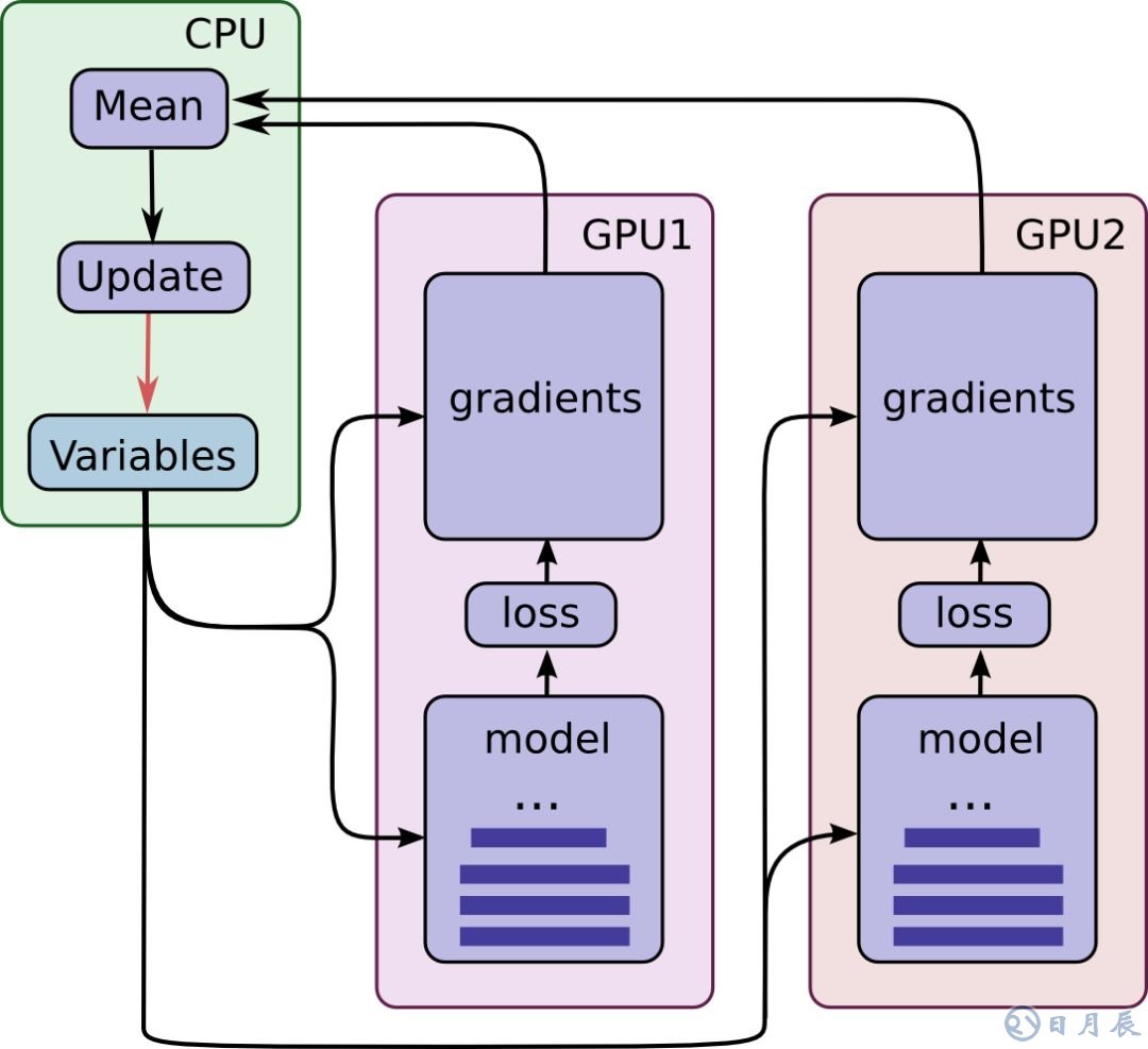 GPU 會同步運行。GPU 的所有梯度將累積并求平均值(如綠色方框所示)。模型參數(shù)會更新為所有模型副本的梯度平均值。