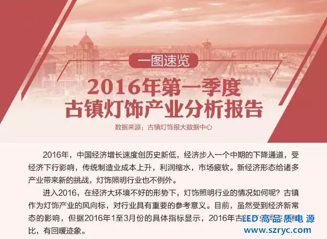 進(jìn)入2016,在經(jīng)濟(jì)大環(huán)境不好的形勢下,燈飾照明行業(yè)的情況如何呢?古鎮(zhèn)作為燈飾產(chǎn)業(yè)的風(fēng)向標(biāo),對行業(yè)具有重要的參考意義。目前,雖然受到經(jīng)濟(jì)新常態(tài)的影響,但據(jù)2016年1至3月份的具體指標(biāo)顯示,2016年古鎮(zhèn)產(chǎn)業(yè)同往年相比,有回暖跡象。