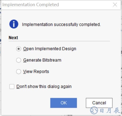 Implementation完畢之后會出現(xiàn)如下彈框。點擊OK則會打開Implementation之后的設(shè)計。