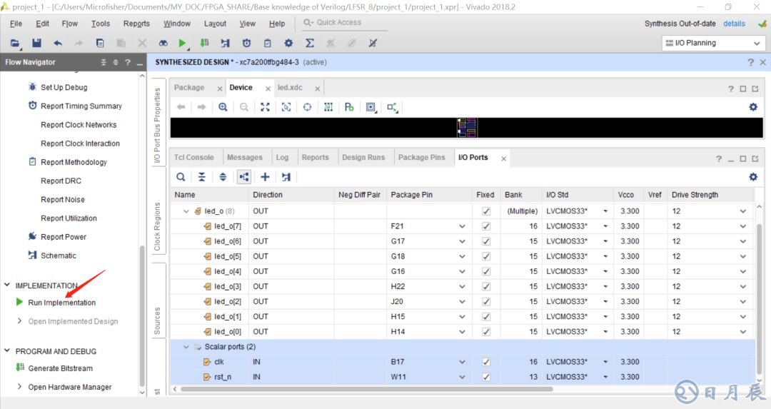 引腳分配完畢之后,在Flow Navigator界面下點擊Run Implementation
