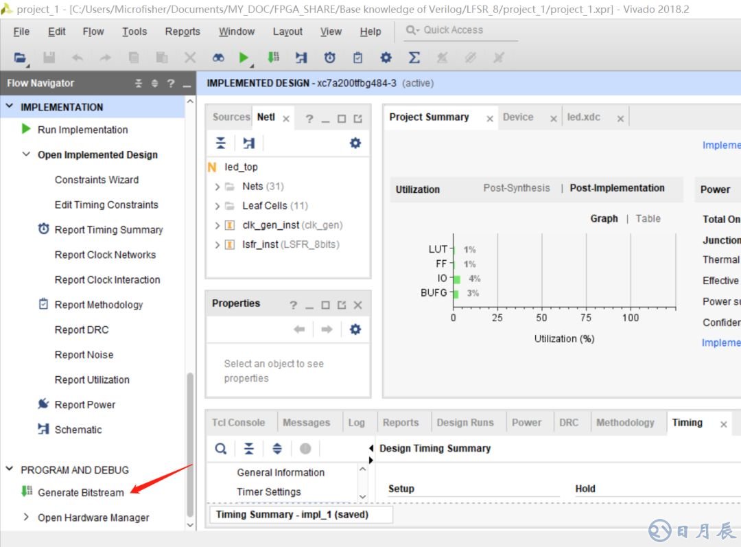 Implementation之后在Flow Navigator界面下點擊Generate Bitstream