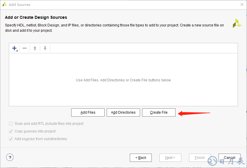 3. 這里點擊Create File。Add Files表示添加已有的設(shè)計文件,Add Directories表示添加文件夾。