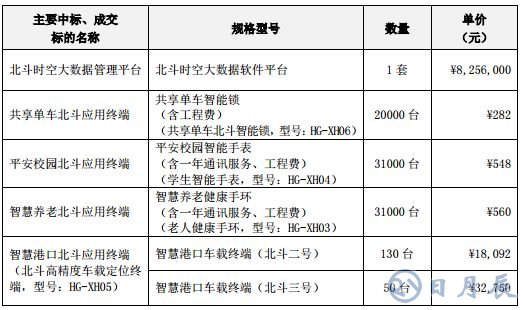 此外,據(jù)廣東省政府采購網(wǎng)2018年12月18日發(fā)布了“珠三角衛(wèi)星導(dǎo)航應(yīng)用示范系統(tǒng)工程南沙新區(qū)北斗城市應(yīng)用示范項(xiàng)目中標(biāo)公告”顯示,海格通信為中標(biāo)供應(yīng)商,中標(biāo)金額 6599 萬元。2018年12月19日,海格通信收到《中標(biāo)通知書》。中標(biāo)主要明細(xì)如下: