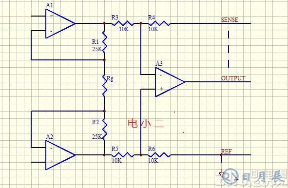 因此,為了減少外圍器件,以及不必要的誤差,建議在條件運(yùn)行的狀況下,采用儀表放大器,其內(nèi)部已經(jīng)集成了差分電路,所有使用時(shí)外圍器件比較少,電路結(jié)構(gòu)簡(jiǎn)單,受干擾情況也會(huì)減小。