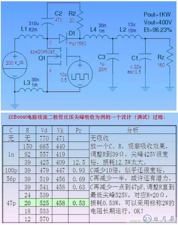 電阻R 的最重要作用是產(chǎn)生阻尼,吸收電壓尖峰的諧振能量,是功率器件。