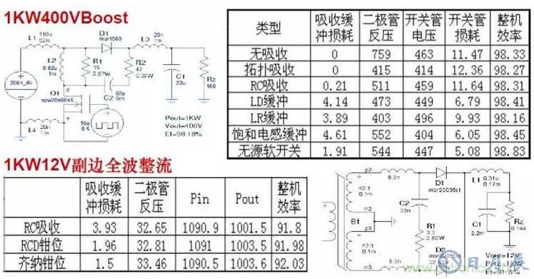 無(wú)源無(wú)損軟開關(guān)電路效率明顯高于其他緩沖吸收方式,與有源軟開關(guān)電路效率相差無(wú)幾。因此只要能夠?qū)崿F(xiàn)無(wú)源軟開關(guān)的電路,可不必采用有源軟開關(guān)。