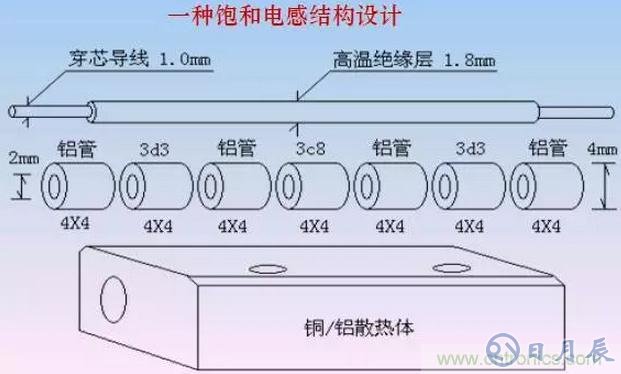 在其他條件相同情況下,相同體積的磁芯的飽和電感緩沖效果大致相當(dāng)。既然如此,磁芯可以按照最有利于散熱的磁路進(jìn)行設(shè)計(jì)。比如細(xì)長(zhǎng)的管狀磁芯比環(huán)狀磁芯、多個(gè)小磁芯比集中一個(gè)大磁芯、穿心電感比多匝電感顯然具有更大的散熱表面積。