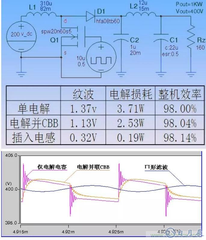 提出的辦法是:用電感將電解和CBB分開,CBB位于高頻紋波電流側(cè),電解位于直流(工頻)側(cè),各自承擔(dān)對(duì)應(yīng)的濾波任務(wù)。