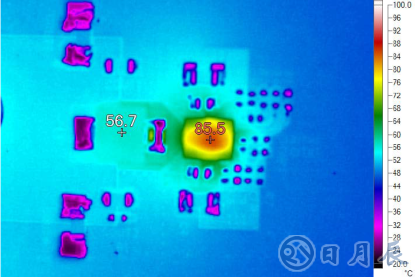 圖4. LTC7150S原理圖和熱圖像,用于5 V輸入至0.85 V / 20 A輸出,f SW = 2 MHz。