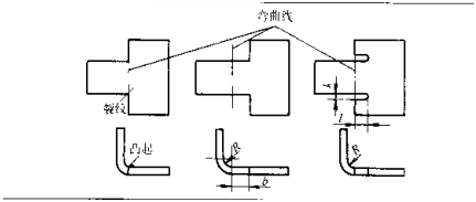 彎曲寬窄不同部分的零件時應注意彎曲線的位置。否則會在寬邊上產(chǎn)生凸起或裂紋??蓪澢€移出一個距離或沖切工藝缺口。