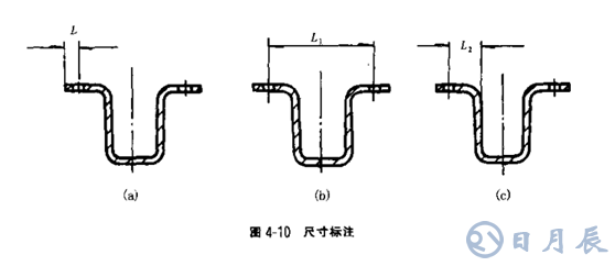 孔的位置尺寸,如圖a標注所示,其加工工藝是落料、沖孔后彎曲,這樣加工簡單,但孔位精度低。如圖b、c標注所示,其工藝是落料、彎曲后沖孔或同時沖孔,模具復雜,但精度高。所以,尺寸標注與工藝、精度、成本有關,值得設計師思考。