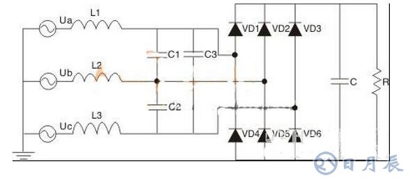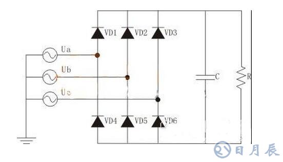 圖1 大電容濾波的三相不控整流電路