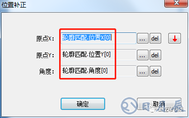 4. 位置補正。添加“位置補正”工具至流程欄,添加原點X、Y、角度信息,信息選擇輪廓匹配的位置,如下圖4所示。