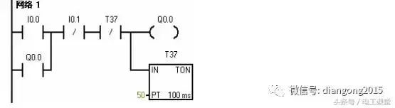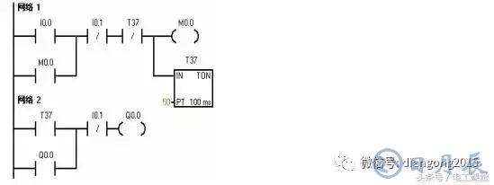 3.延時(shí)啟??刂齐娐吩撾娐芬笥休斎胄盘柡螅R欢螘r(shí)間輸出信號才為ON;而輸入信號0FF后,輸出信號延時(shí)一段時(shí)間才OFF。 T37延時(shí)3 s作為Q0.0的啟動(dòng)條件,T38延時(shí)5 s作為Q0.0的關(guān)斷條件。