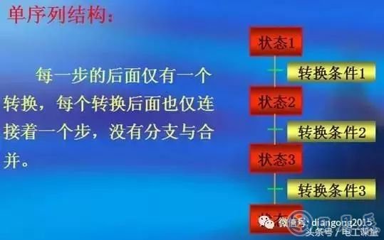 功能表圖的基本結(jié)構(gòu):單序列結(jié)構(gòu)、選擇序列結(jié)構(gòu)、合并序列結(jié)構(gòu)