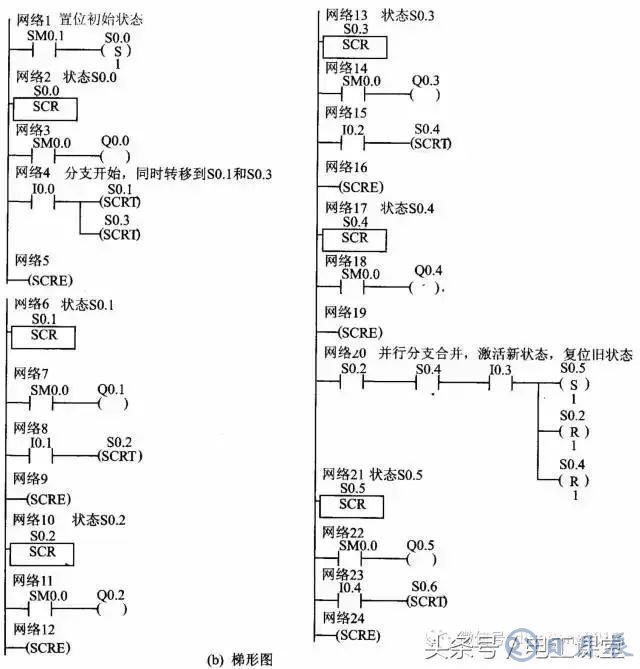 (6)在狀態(tài)發(fā)生轉(zhuǎn)移后,所有的SCR段的元器件一般也要復(fù)位。如果希望繼續(xù)輸出,可使用置位/復(fù)位指令。