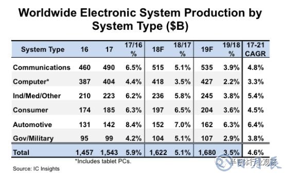 根據(jù)市場研究公司IC Insights預(yù)測,隨著技術(shù)進步不斷增加車內(nèi)的電子組件用量,預(yù)計在2021年以前,汽車電子系統(tǒng)將持續(xù)成為六大主要半導(dǎo)體終端市場中成長最強勁的應(yīng)用。
