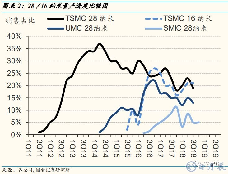 隨著7 納米時代的來臨,將使得臺積電領(lǐng)先其他業(yè)者于 2019年二季度末看到產(chǎn)能利用率全面復(fù)蘇,而中芯國際在增加 14 及 7 納米的研發(fā)支出后,很難避免其虧損擴大而謹(jǐn)慎擴產(chǎn),并造成中芯國際本身及配合的邏輯封測廠在內(nèi)的一條龍運作的增長動能消失。