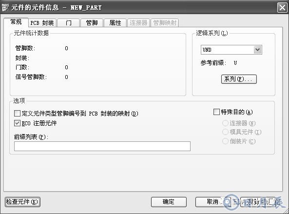 “元件的元件信息”對(duì)話框包括7個(gè)標(biāo)簽頁(yè),分別是【常規(guī)】、【PCB封裝】、【門】、【管腳】、【屬性】、【連接器】、【管腳映射】。
