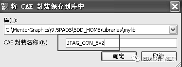 (4)在彈出的對(duì)話框中輸入CAE封裝名稱“JTAG_CON_5X2”,如圖3-19所示。