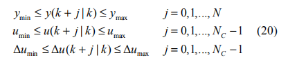 這部分分析線性狀態(tài)空間模型中MPC 算法的應(yīng)用,并在求解有約束的最優(yōu)化問題時(shí)引入松弛變量,在此基礎(chǔ)上,針對(duì)有執(zhí)行器時(shí)延的系統(tǒng),提出改進(jìn) MPC算法。