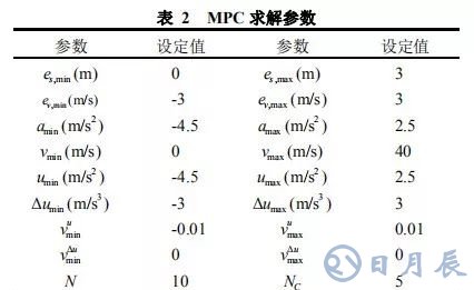 其中 yref 為參考軌跡,N 為預(yù)測(cè)時(shí)域,NC 為控制時(shí)域。Q, R 分別為誤差和輸入加權(quán)矩陣。