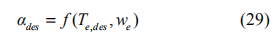 若已知發(fā)動機轉速 we 和期望扭矩Te,des ,便可通過查表法得到對應的期望油門開度αdes ,即: