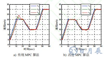 圖 5 兩種算法下 CACC 系統(tǒng)車輛的速度曲線