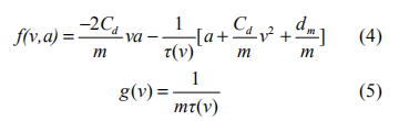上兩式中, Cd 代表了氣動阻力系數, m 為車輛的質量, t為車輛發(fā)動機的時間常數, dm 為車輛的機械阻力。