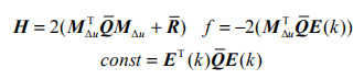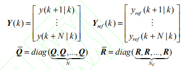 其中 yref 為參考軌跡,N 為預測時域,NC 為控制時域。Q, R 分別為誤差和輸入加權矩陣。