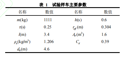 實驗樣車各參數如表 1 所示: