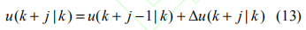 假設每個采樣周期ts的狀態(tài)和干擾可測,通過迭代計算,記 x(k + j | k) 為系統(tǒng)在 k 時刻對 k + j 時刻的狀態(tài)預測,以u(k |k) 代表預測的控制輸入,控制過程通過增量控制Δu 實現: