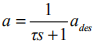 ,表明發(fā)動機跟蹤特性可用一階滯后建模,即實際加速度a 以時間常數τ跟蹤期望加速度 ades 。