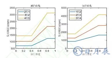 圖 3 加減檔下油門門開度與發(fā)動機轉速曲線