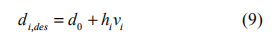其中 di,des 是第i 輛車距前車的期望車間距離,本文采用固定車頭時距策略,有: