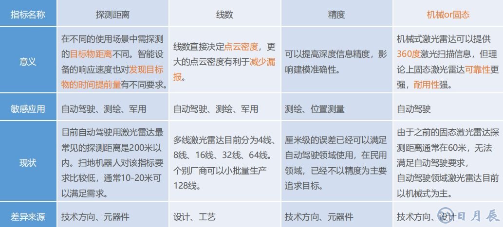 激光雷達(dá)模塊的關(guān)鍵技術(shù)如下表: