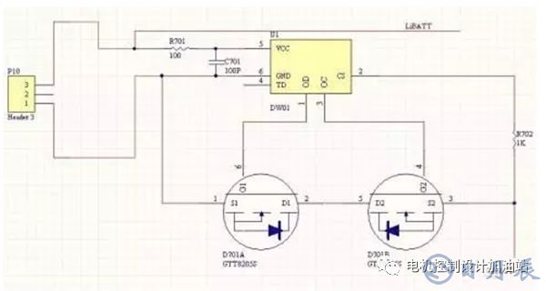 選擇芯片DW01 和GTT8205的組合,可以做到短路保護(hù),過(guò)充過(guò)放電的保護(hù)