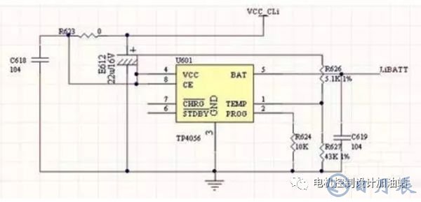 這里選擇了芯片TP4056為例子。根據(jù)所接電阻不同可以控制充電最大電流。可以設(shè)計(jì)充電指示燈,可以設(shè)計(jì)充電溫度即多少到多少度之間進(jìn)行充電。