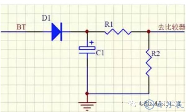 可以看出這個(gè)電路由于加入了D1、C1能夠使電池取樣電壓快速建立,延時(shí)保護(hù)。