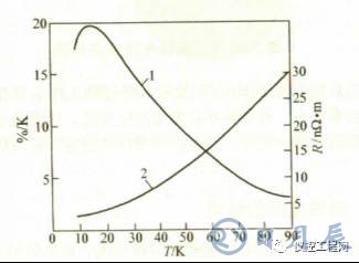 1:鉑電阻電阻率與溫度關(guān)系曲線;2:鉑電阻相對靈敏度曲線