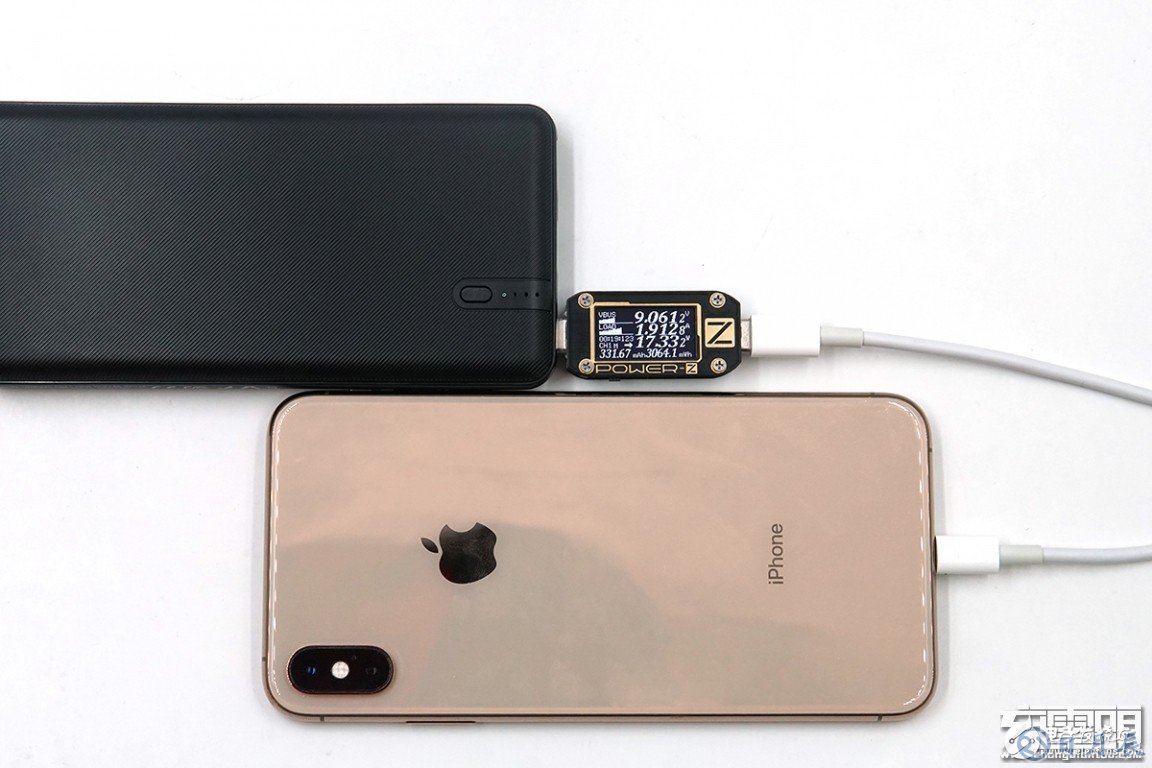 厚度方面比iPhone XS厚一點點,對于10000mAh規(guī)格的移動電源來說,實屬輕薄小巧。