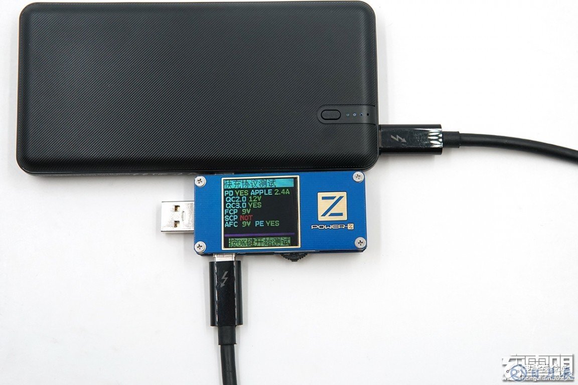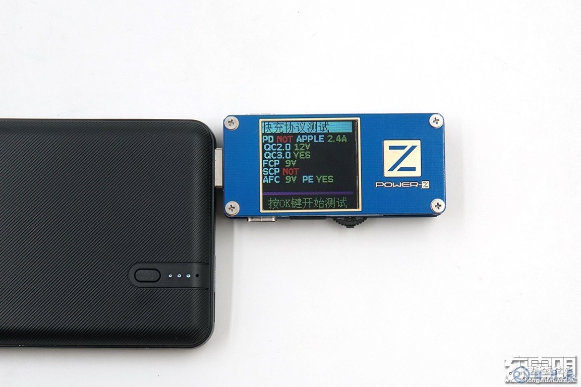 OLODO CS3-PD18的USB-C接口輸出支持USB PD、Apple2.4A、QC3.0/2.0、FCP、AFC、PE等充電協(xié)議,我們來測試一下。