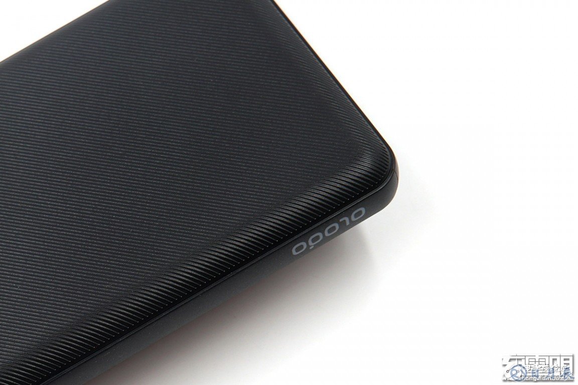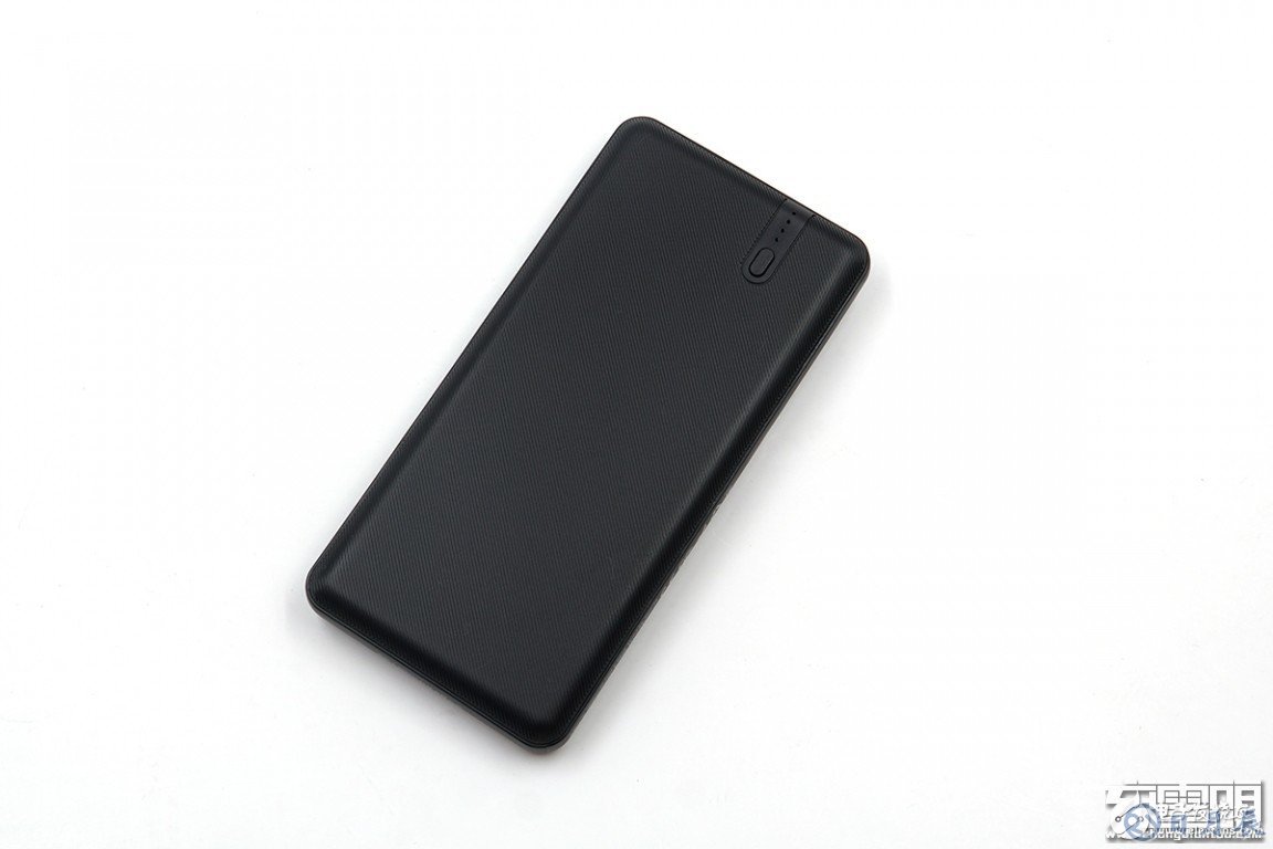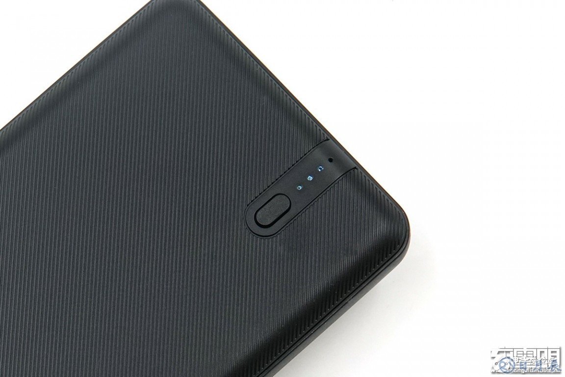 移動電源正面和背面都有斜紋,除了防止刮花,也能增加摩擦力。四周帶有圓弧倒角,增加了移動電源的握持的舒適感。