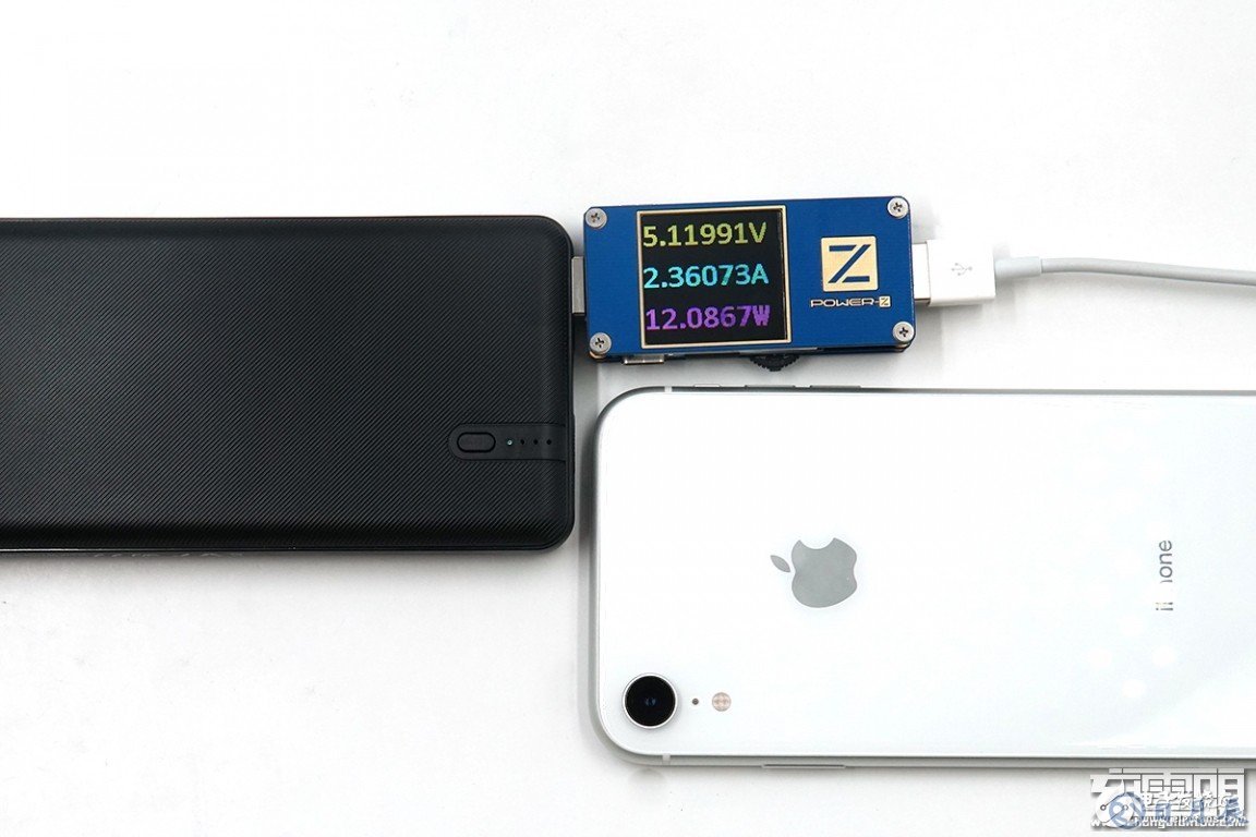 充iPhone XR,剩余電量13%,電壓為5.11V,電流為2.36A,功率為12.08W,支持Apple2.4A充電。
