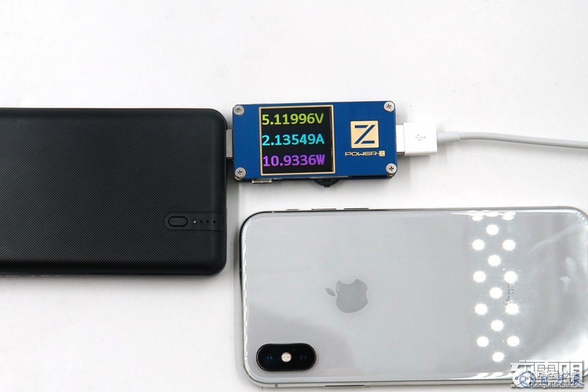 充iPhone X,剩余電量18%,電壓為5.11V,電流為2.13A,功率為10.93W,支持Apple2.4A充電。