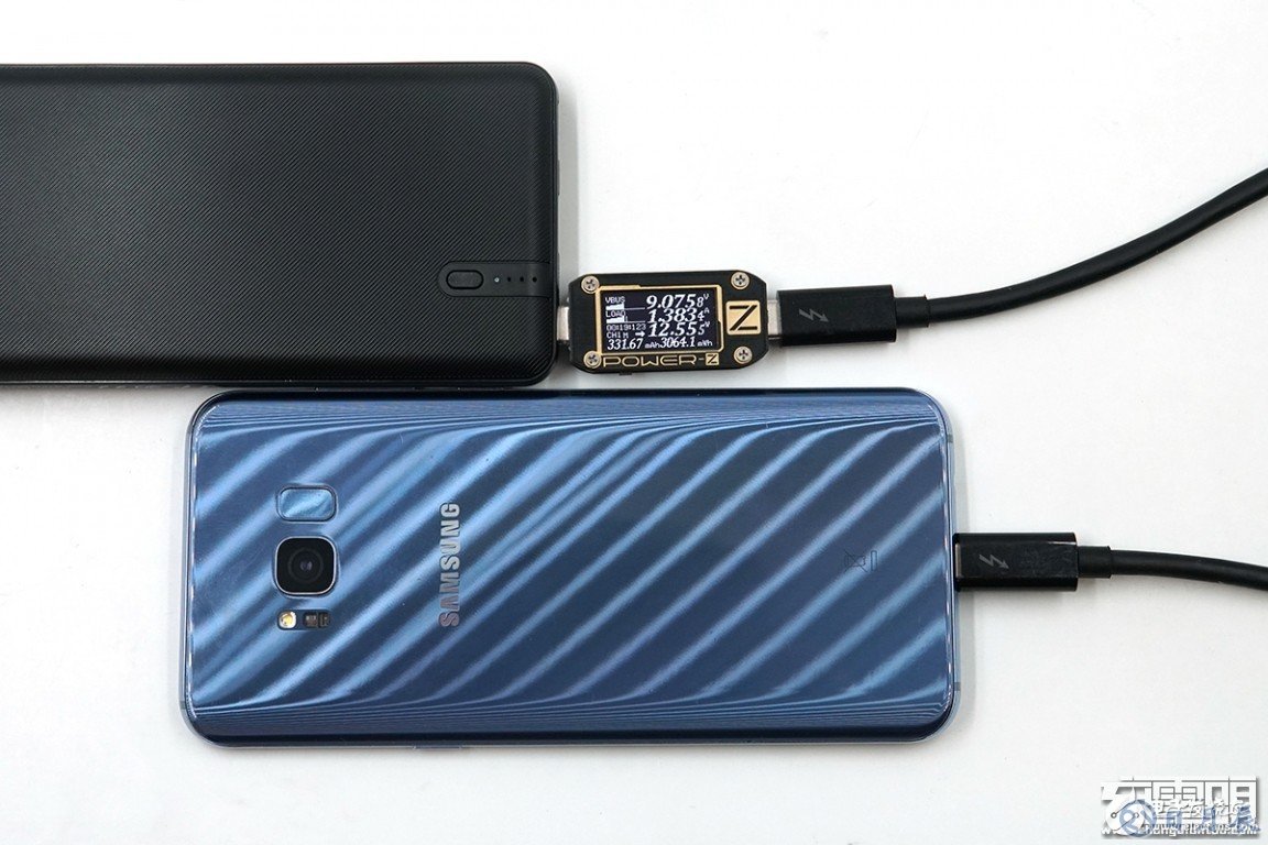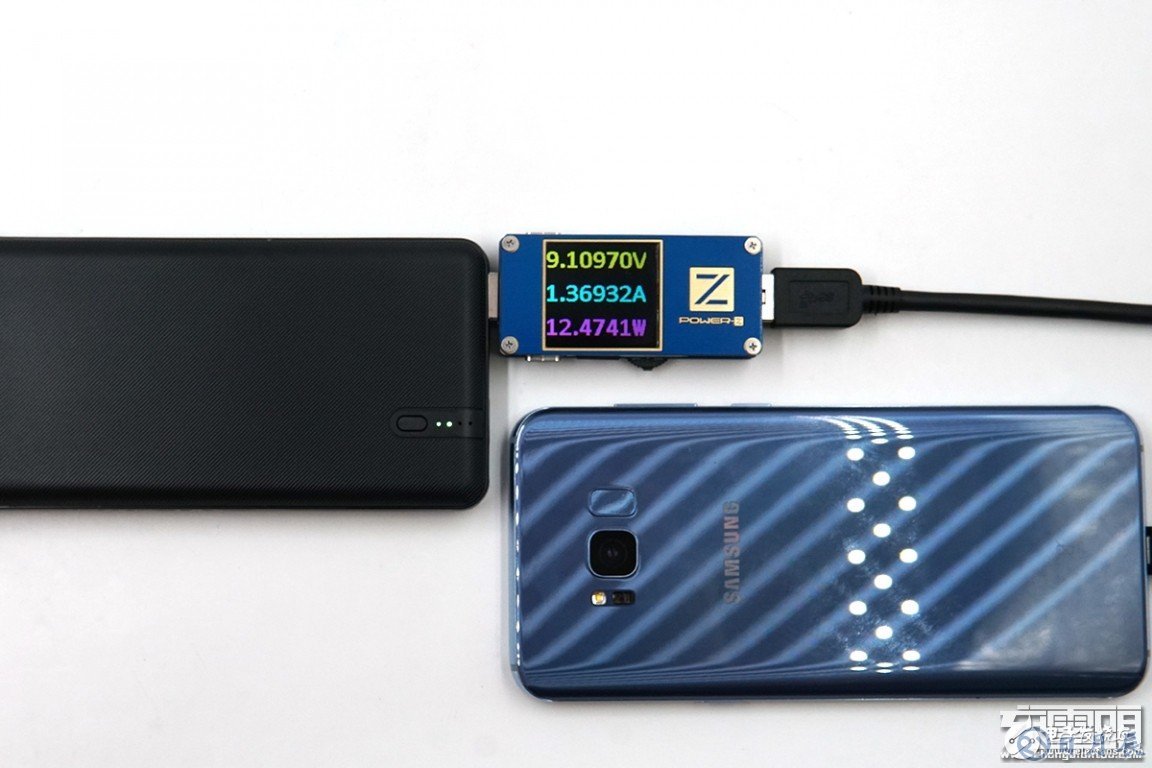 充三星S8+,剩余電量23%,電壓為9.07V,電流為1.38A,功率為12.55W,支持USB PD充電。