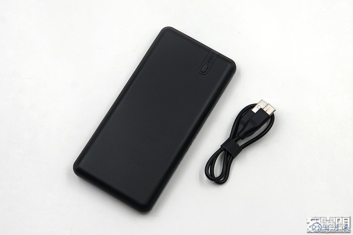 移動電源外觀設(shè)計非常干凈簡潔,正面和背面沒有任何圖案、文字。