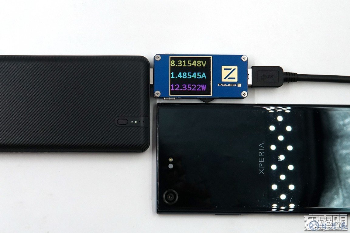 充SONY XZ Premiun,剩余電量16%,電壓為8.31V,電流為1.48A,功率為12.35W,支持QC3.0充電協(xié)議。