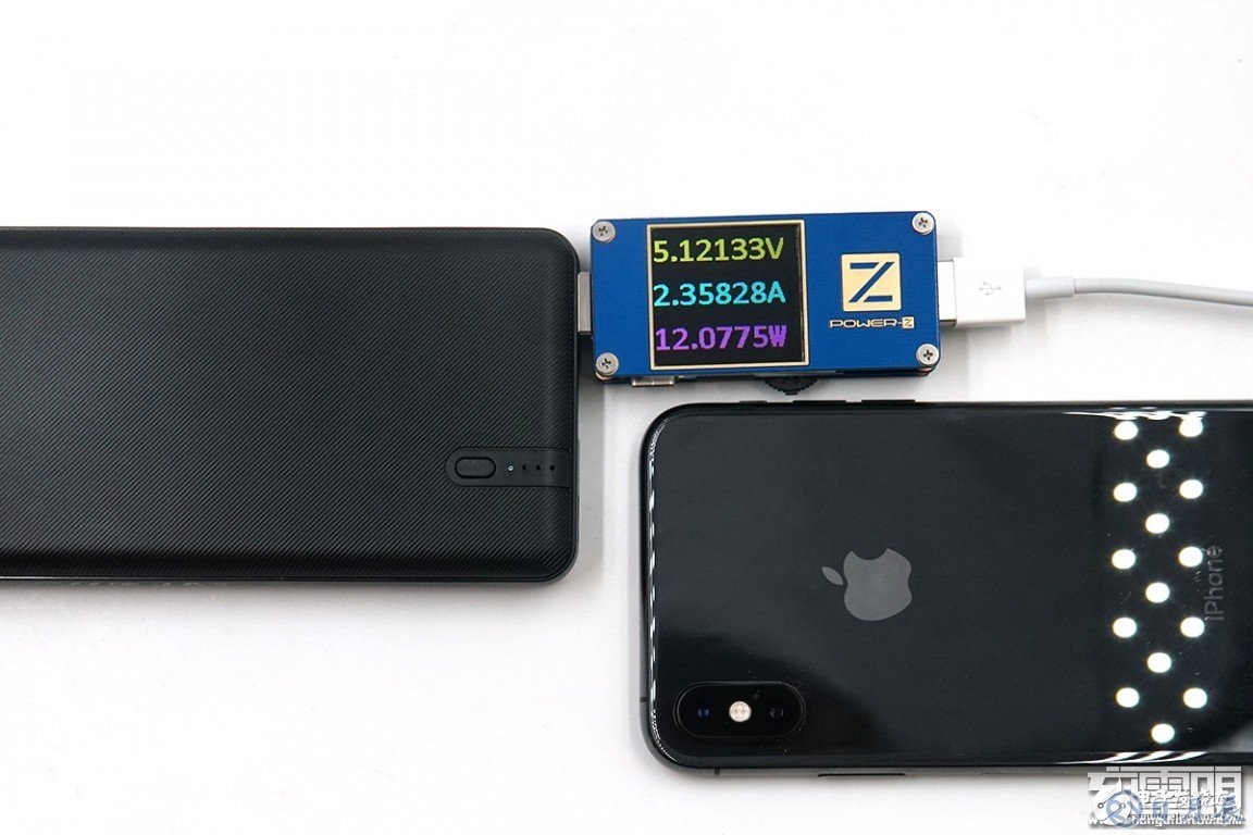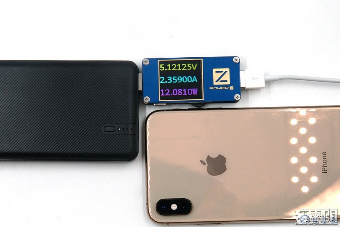 充iPhone XS ,剩余電量11%,電壓為5.12V,電流為2.35A,功率為12.07W,支持Apple2.4A充電。