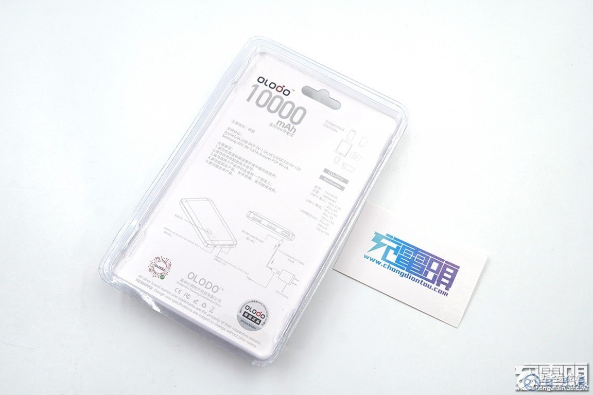 OLODO這款移動電源采用透明塑料盒包裝,可看到移動電源的外觀,頂部有掛孔,方便在實體店內(nèi)展示。